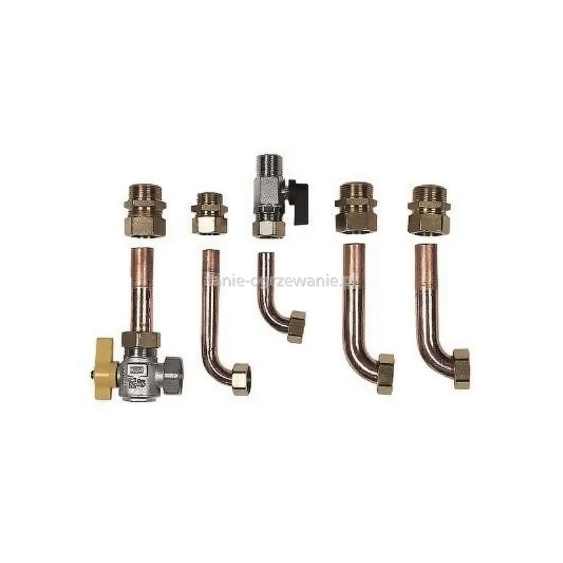 Fabryczny zestaw zaworów do podłączenia pieców gazowych Immergas do instalacji CO i gazowej.