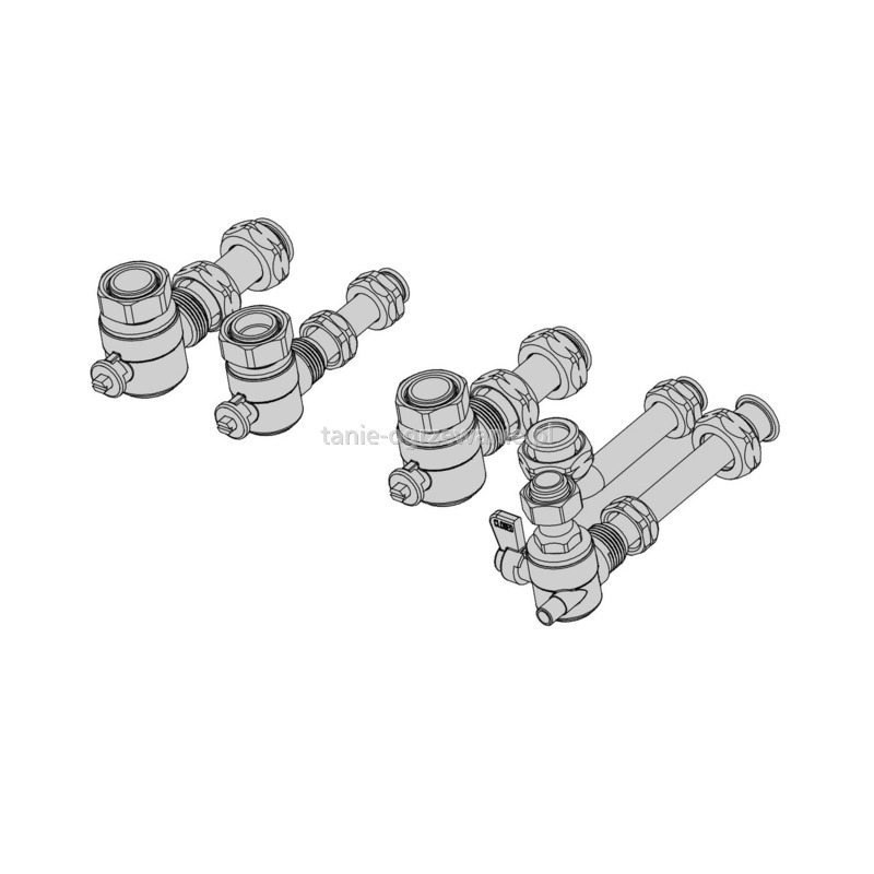 Fabryczny zestaw zaworów do podłączenia pieców gazowych Saunier Duval do instalacji CO i gazowej.