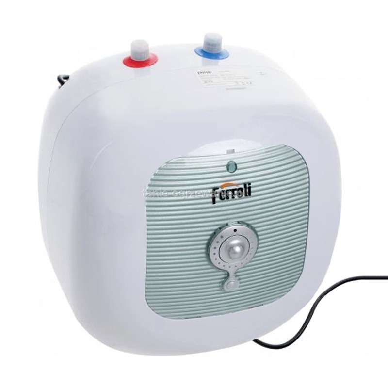 Bojler (podgrzewacz objętościowy) elektryczny Cubo marki Ferroli do montażu nod umywalką, zlewozmywakiem. Stosowany najczęściej jako dodatkowe podgrzewanie wody poprawiające komfort w instalacjach gdzie trzeba długo czekać na ciepłą wodę (brak cyrkulacji c.w.u.) lub jako główny podgrzewacz do punków o mały zużyciu wody jak np. toaleta.