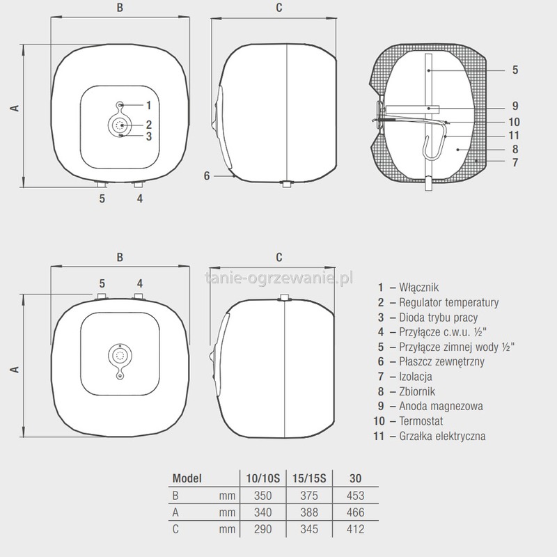 - anodę magnezową do ochrony zbiornika przed korozją,