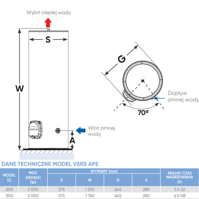 Bojler 300L elektryczny APE 1765x575mm 3000W grzałka ceramiczna 230/400V