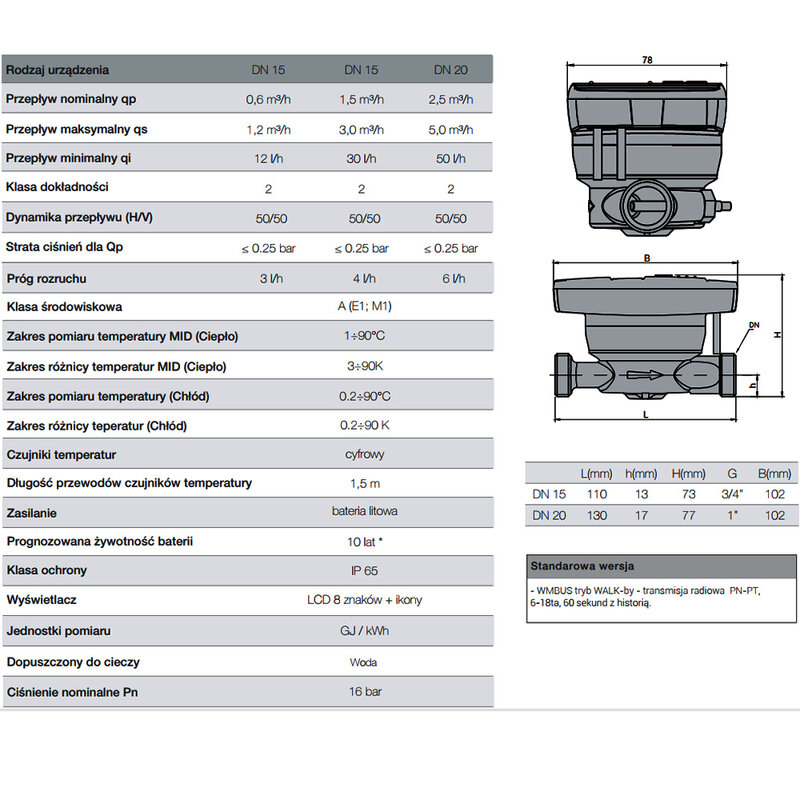 Ciepłomierz, licznik ciepła Hydrocal M4 radiowy to miernik energii cieplnej przeznaczony do pomiarów i rozliczeń w instalacjach grzewczych i chłodniczych.  Polecamy go szczególnie dla wspólnot mieszkaniowych i spółdzielni, gdzie odczyt radiowy ułatwia rozliczenie poszczególnych lokali. Prezentowany model przeznaczony jest do instalacji mieszkaniowych o przepływie Q 0,6 m3/h i jest optymalny dla mieszkań o powierzchni do 80-100 m2. Dla nowych budynków w/g WT2021 można go stosować dla mieszkań do 150 m2.