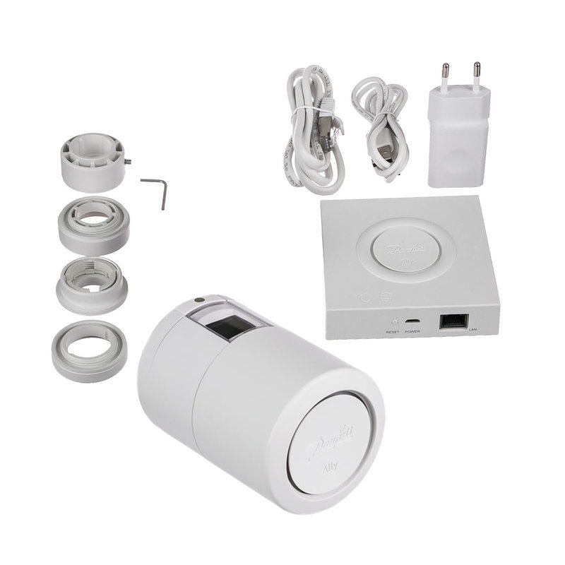 Głowica elektroniczna Danfoss Ally ZigBee w zestawie z bramką ZigBee to termostat grzejnikowy zdalnie sterowany. Seria produktów Danfoss Ally to następca produktów Danfoss Link. Głowica Danfoss Ally jest sterowana radiowo przez bramkę (centralkę) podpiętą do internetu. Dzięki temu możemy w wygodny sposób zdalnie sterować i kontrolować temperaturę w poszczególnych pomieszczeniach, a także w wyjątkowo łatwo ustawiać automatycznych harmonogram tygodniowy. Dzięki ustawieniu w wybrane dni i godziny temperatur komfortowych oraz obniżonych (gdy pomieszczenia są nieużywane) możemy uzyskać spore obniżenie rachunków za ogrzewanie.