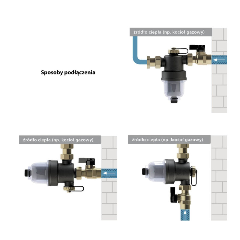 Ten kompaktowy filtr (separator) przeznaczony jest do montażu bezpośrednio na powrocie źródła ciepła. Jego głównym zadaniem jest wychwytywanie cząstek stałych (filtr siatkowych) i osadów ferromagnetycznych (magnes) a tym samym ochrona źródła ciepła (pieca gzowego) a w szczególności wrażliwych na takie zanieczyszczenia nowoczesnych elektronicznych pomp obiegowych.