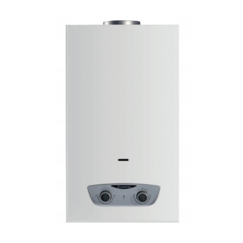 W prezentowanym podgrzewaczu wody Ariston moc palnika regulowana jest za pomocą pokrętła, które znajduje się po lewej stronie urządzenia. Prawym pokrętłem reguluje się temperaturę przepływającej wody. Podgrzewcza fabrycznie dostosowany jest do spalania gazu ziemnego GZ50 z możliwością przezbrojenia na gaz płynny. Moc maksymalna to 18,5KW.
