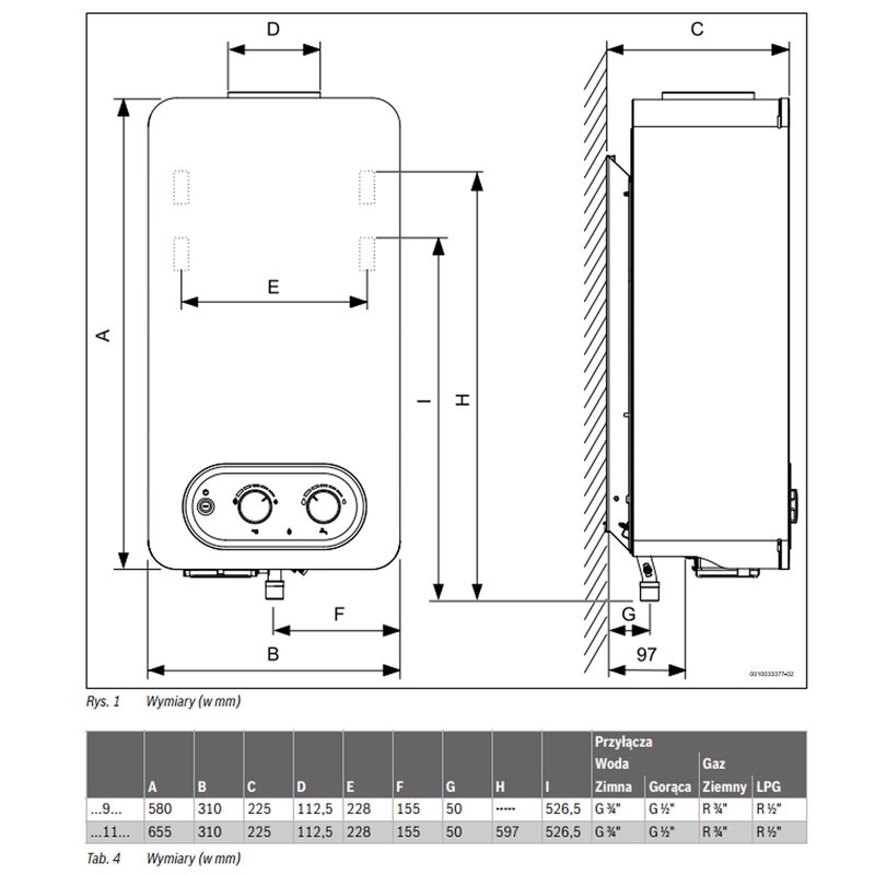 Wydajność podgrzewania ciepłej wody zależy od mocy maksymalnej podgrzewacza i wynosi dla tej serii odpowiednio: