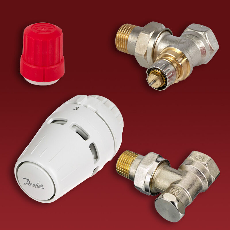 Zestaw termostatyczny firmy Danfoss z głowicą Regus do grzejnika zasilanego z boku gdy rury zasilające wychodzą ze ściany obok grzejnika. Zestaw ten stosowany jest także do zasilania grzejników łazienkowych drabinkowych z podłączeniem dolnym