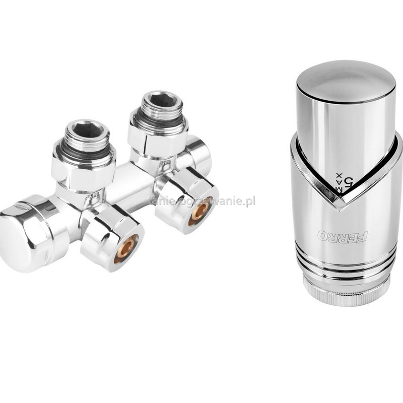 Zestaw termostatyczny Ferro 8-29°C 3/4 zespolony kątowy chrom + nyple