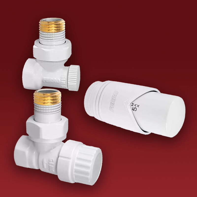 Zestaw termostatyczny Ferro biały kątowy przeznaczony do grzejników: