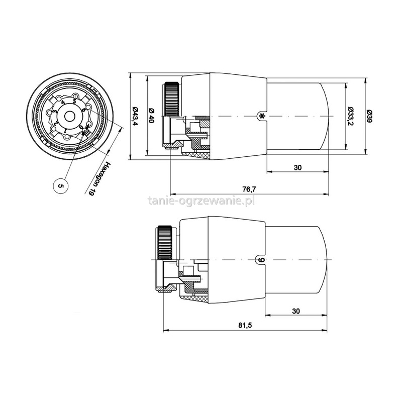 Dodatkowym atutem tej serii głowic jest możliwość ograniczenia zakresu regulacji temperatury. Pełny zakres regulacji 8 do 30 st. Celsujsza można ograniczyć z góry lub z dołu za pomocą kołków ustalających.