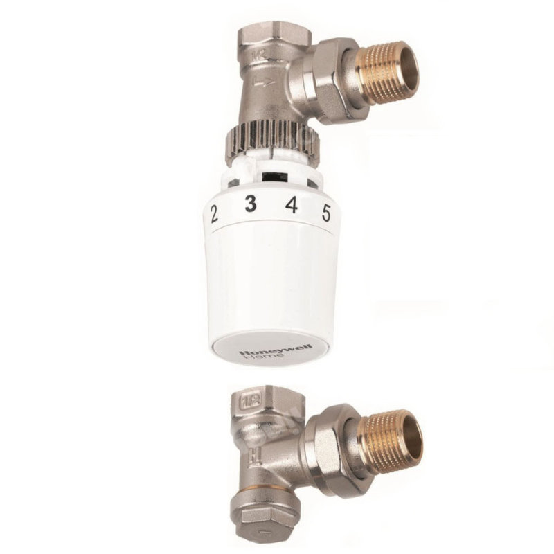 Zestaw do grzejników bocznozasilanych Honeywell T5 6-28°C 1/2 kątowy biały