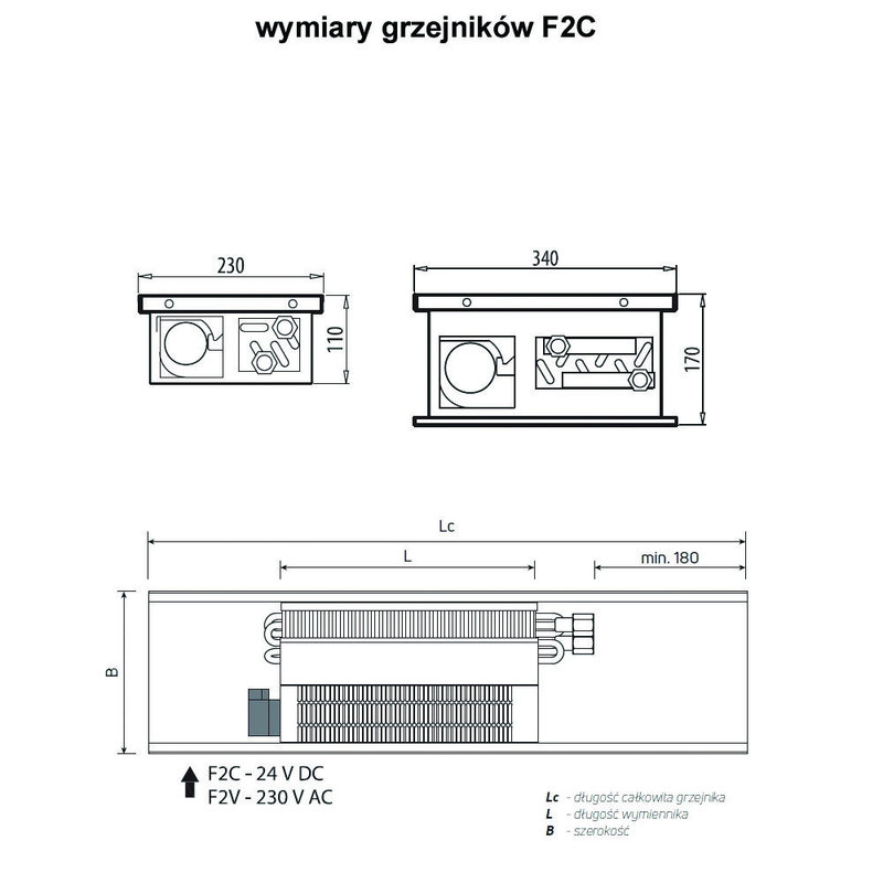 Klimakonwektor kanałowy Aquilo F2C 170x340x2100mm
