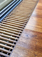 W przypadku podłogi wykończonej parkietem, deską warstwową lub pełnym drewnem połączenie kratki z podłogą można zrealizować w poniższy sposób:Korek - potrafi zniwelować optycznie niewielki niedokładności cięcia desek w zakresie długości. Jakość deski oraz piły do cięcia musi gwarantować brak odprysków i ubytków na krawędzi cięcia. Przykłady: