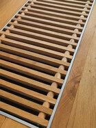 Listwą aluminiowa "L" - Listwa (ramka grzejnika) akcentuje jego formę. Wymagana jest wysoka precyzja cięcia desek warstwowych. Drewno pełne powinno być bardzo dobrze wysezonowane i zabezpieczone przed wilgocią.