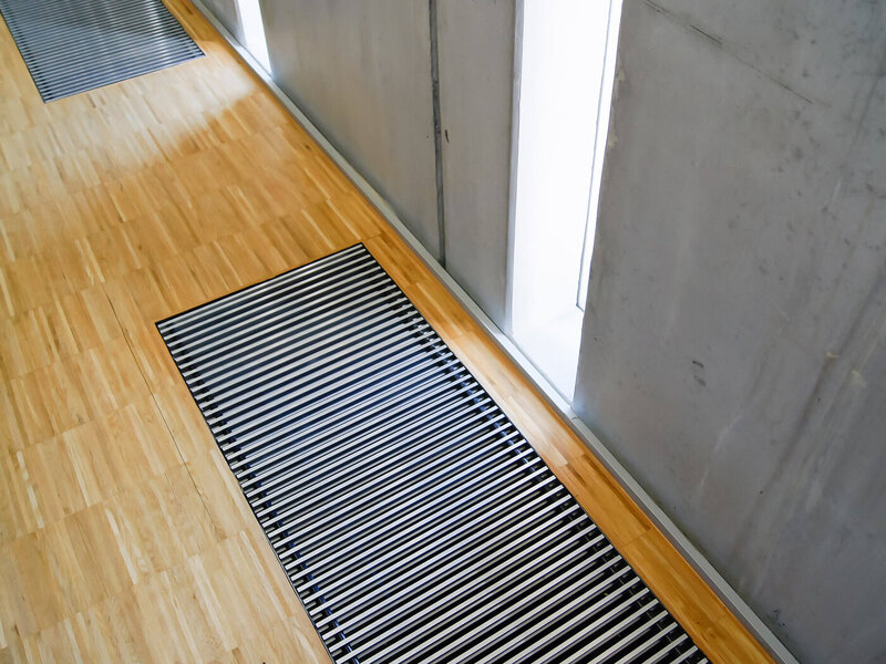 W przypadku podłogi wykończonej parkietem, deską warstwową lub pełnym drewnem połączenie kratki z podłogą można zrealizować w poniższy sposób:Korek - potrafi zniwelować optycznie niewielki niedokładności cięcia desek w zakresie długości. Jakość deski oraz piły do cięcia musi gwarantować brak odprysków i ubytków na krawędzi cięcia. Przykłady: