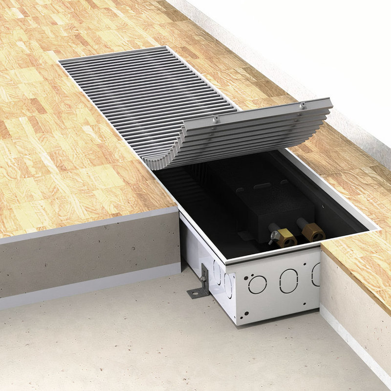 Grzejnik kanałowy Purmo Aquilo FMS przeznaczony jest to wodnych instalacji centralnego ogrzewania. Grzejniki FMS nie posiadają wentylatorów, dzięki czemu sprawdzają się znakomicie jako ogrzewanie dodatkowe lub ogrzewanie główne w pomieszczeniach z długą linią przeszkleń wzdłuż której, można zamontować grzejnik podłogowy.