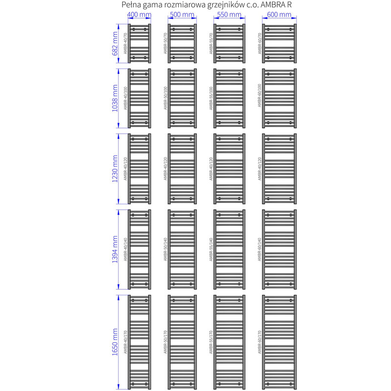 Grzejnik łazienkowy Ambra 1038x500mm przyłącze D450mm