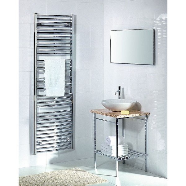 Efektowny połysk chromu i lekka krzywizna kolektorów nadają grzejnikowi