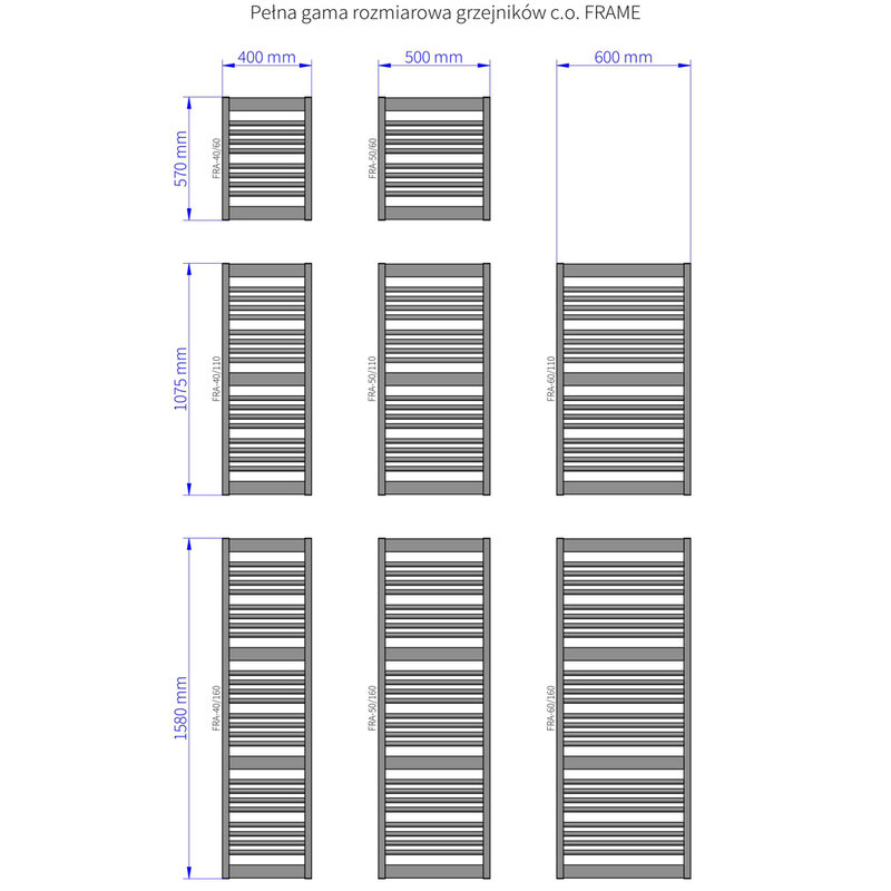 Grzejnik łazienkowy Frame 570x400mm przyłącze boczne B500mm