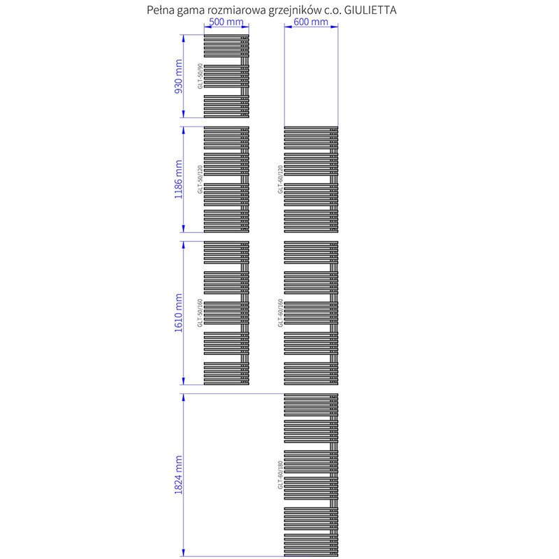 Grzejnik łazienkowy Giulietta 930x500mm przyłącze D50mm