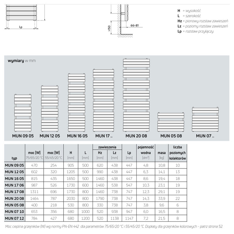 Zdjęcie produktu ma charakter poglądowy. Dokładny układ grzejnika dla każdego rozmiaru oraz dodatkowe informacje techniczne dostępne są w pliku Dokumentacja PDF obok ilustracji.