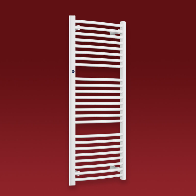 Grzejnik łazienkowy Omega firmy Instal Projekt to prawie płaska konstrukcja drabinki, gdzie kolektory pionowe połączone są rurkami poziomymi delikatnie wygiętymi w łuk. Dzięki temu grzejnik zajmuje niewiele przestrzeni. Grzejnik można podłączyć od dołu oraz krzyżowo.
