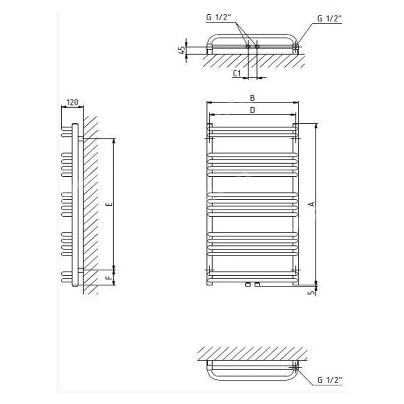 Głębokość grzejnika z uchwytami ściennymi wynosi 100 mm. Przygotowany do podłączenia centralnego dolnego z rozstawem 50mm.