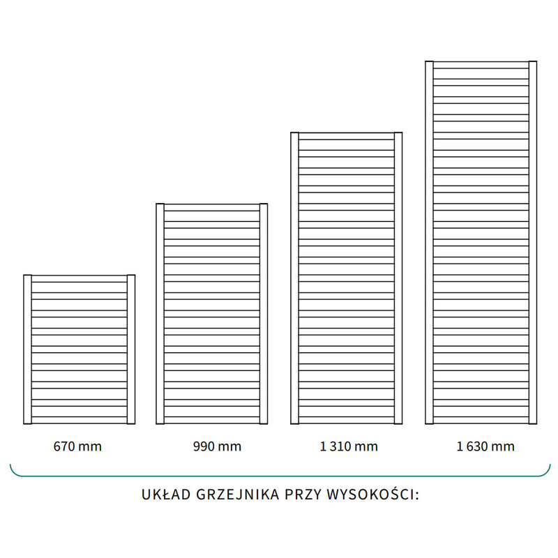 Zdjęcie produktu ma charakter poglądowy. Dokładny układ grzejnika dla każdego rozmiaru oraz dodatkowe informacje techniczne dostępne są w pliku Dokumentacja PDF obok zdjęcia produktu.