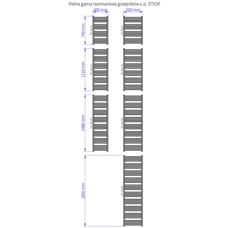 Zdjęcie produktu ma charakter poglądowy. Dokładny układ grzejnika dla każdego rozmiaru oraz dodatkowe informacje techniczne dostępne są w pliku Dokumentacja PDF obok zdjęcia produktu.