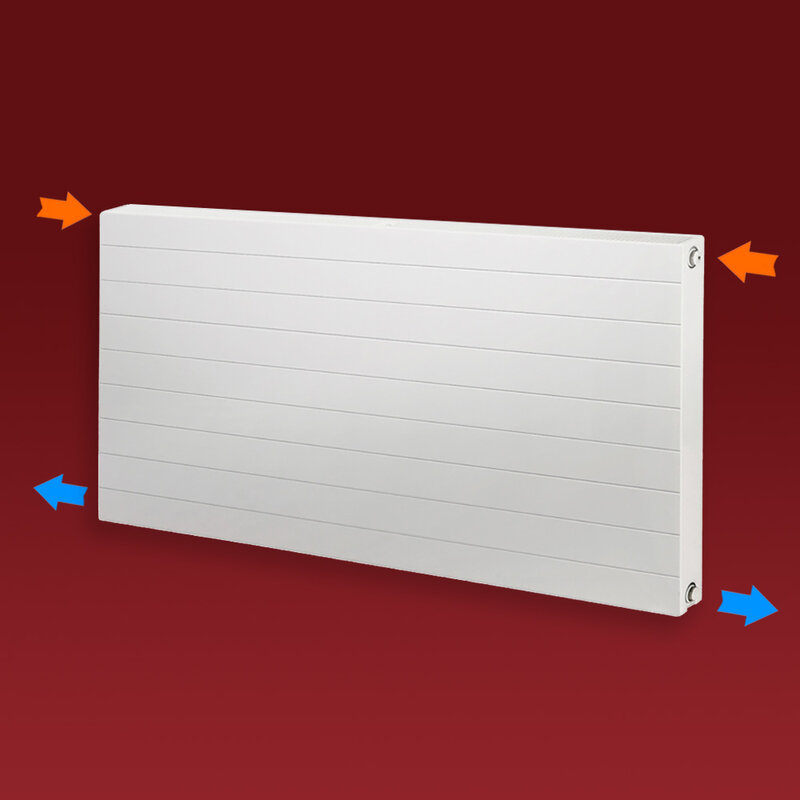 - 4 gwintowane złącza z boku grzejnika w rozmiarze 1/2 cala