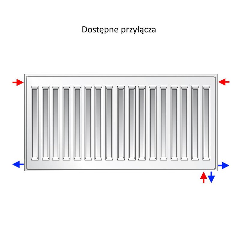- 4 gwintowane złącza z boku grzejnika w rozmiarze 0,5 cala