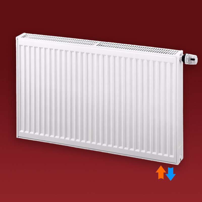 Grzejnik Purmo z serii Compact Ventil z podłączeniem dolnym w rozstawie 50 mm z prawej strony, produkowany jest w wysokościach od 200 do 900mm oraz szerokościach od 400 do 3000 mm. Grzejnik płytowy typu CV, posiada dodatkowo przyłącza boczne. Grzejniki dwupłytowe i trzypłytowe (CV22, CV21 slim i CV33) można obrócić i zamontować jako grzejniki z przyłączem z lewej strony.