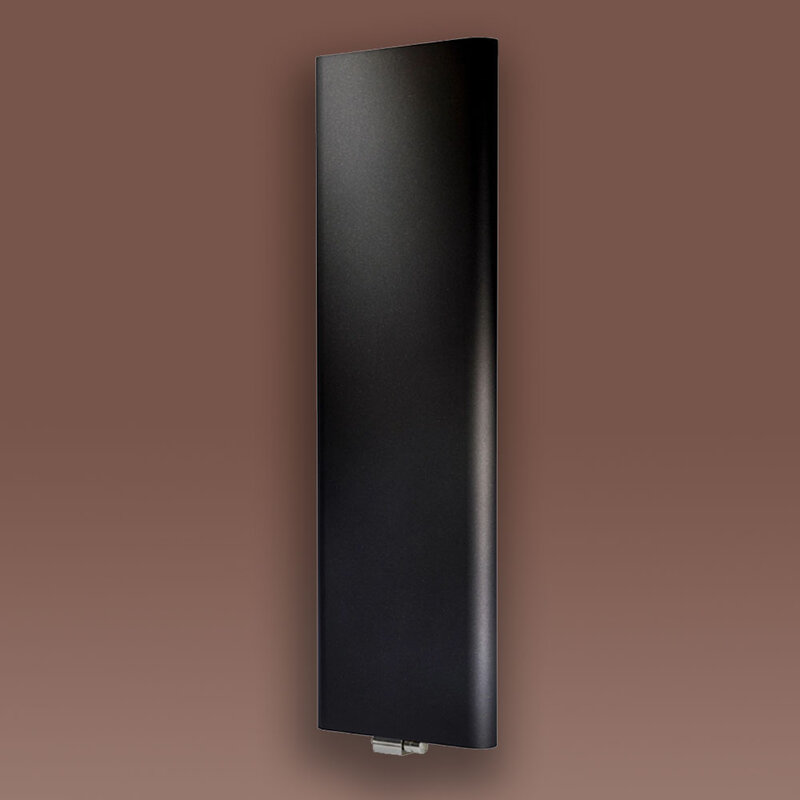Grzejnik Purmo Paros V to pionowy grzejnik dekoracyjny. Gładka płyta czołowa przechodzi łagodnym łukiem w osłony boczne.