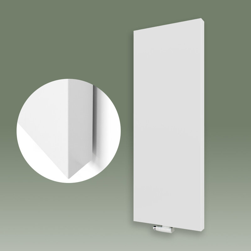 Grzejnik Purmo Tinos V to pionowy grzejnik dekoracyjny. Gładka płyta czołowa stanowi całość wraz z osłonami bocznymi. Krawędzie są wyraźnie zaakcentowane.