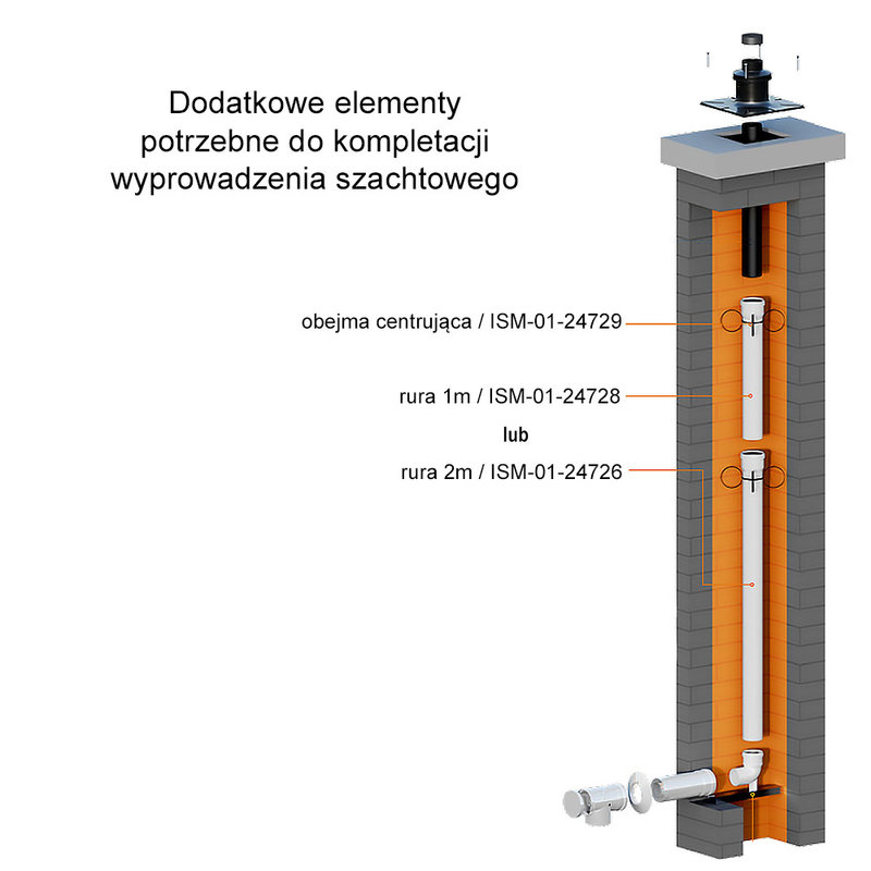 Do pełnej kompletacji systemu: potrzebne będą: rury kominowe do szachtu 80mm na wysokość komina, oraz obejmy centrujące do szachtu zgodnie z ilustracją nr 2.