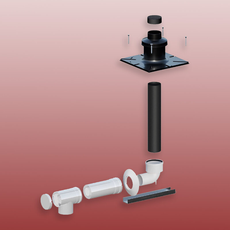 Połączenie kocioł - szacht realizowane jest za pomocą przewodów 60/100mm, kolanko podporowe w szachcie posiada przejście na średnicę 80mm dla pionowej rury w szachcie. Elementy systemu wykonane są polipropylenu dzięki czemu system jest lekki i łatwy w montażu i jest dopuszczony do stosowania w budownictwie jedno i wielorodzinnym na terenie Polski.