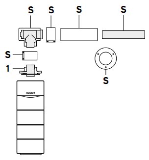 Podstawowy zestaw przyłączeniowy do systemu typu LAS przeznaczony do kotła pracującego niezależnie od powietrza w pomieszczeniu - koncentryczny układ powietrzno - spalinowy