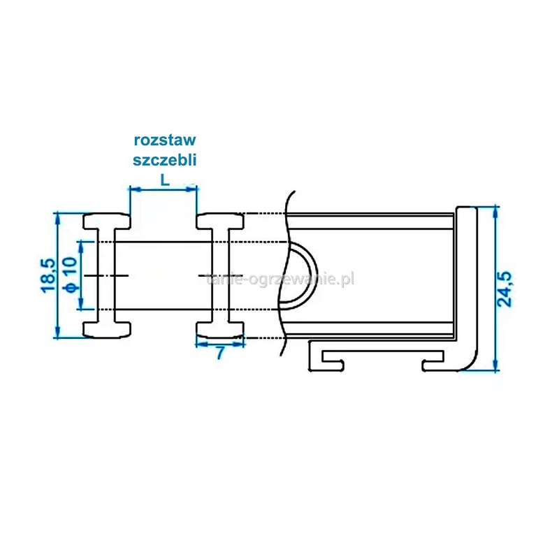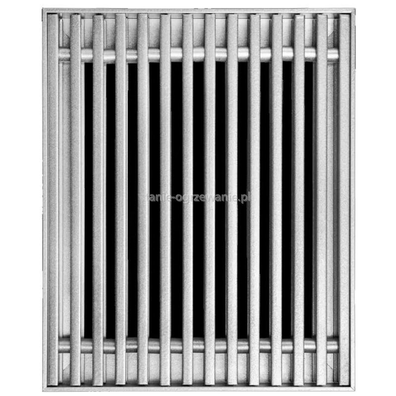 Kratka aluminiowa malowana do grzejników Regulus Triovent, Quattrovent. Kolor wg palety RAL K7, wykonanie standardowe: srebrzystoperłowe. Kratka zwijana. Rozstaw szczebli 7 mm, szerokość kratki 300 mm, długość 1000 mm.