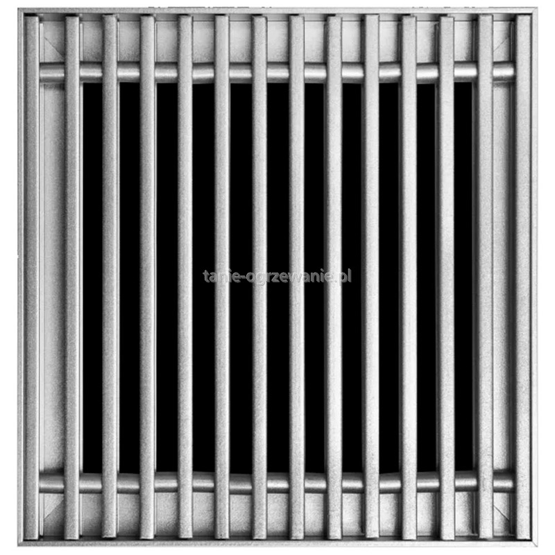 Kratka aluminiowa malowana do grzejników Regulus Triovent, Quattrovent. Kolor wg palety RAL K7, wykonanie standardowe: srebrzystoperłowe. Kratka zwijana. Rozstaw szczebli 10 mm, szerokość kratki 300 mm, długość 1750 mm.