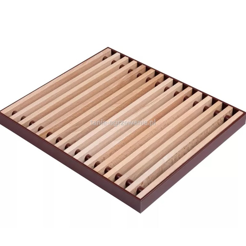 Kratka drewniana bukowa typu listwa do grzejników kanałowych Regulus Triovent, Quattrovent. Rozstaw szczebli 11 mm, szerokość kratki 300 mm, długość 1750 mm. Kratka zwijana.