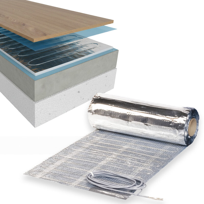 - Moc 70W/m2 pozwala na zastosowanie tych mat jako ogrzewania zasadniczego w budynkach z izolacją według normy WT2017. W budynkach starszych lub o słabszej izolacji maty pod panele mogą być stosowane jako ogrzewanie wspomagające lub stosowane do uzyskania efektu ciepłej podłogi.