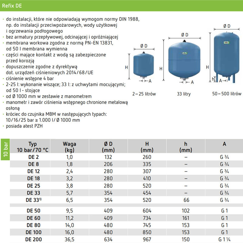Naczynie Refix DE firmy Reflex do instalacji przeciwpożarowych, wody użytkowej i ogrzewania podłogowego,