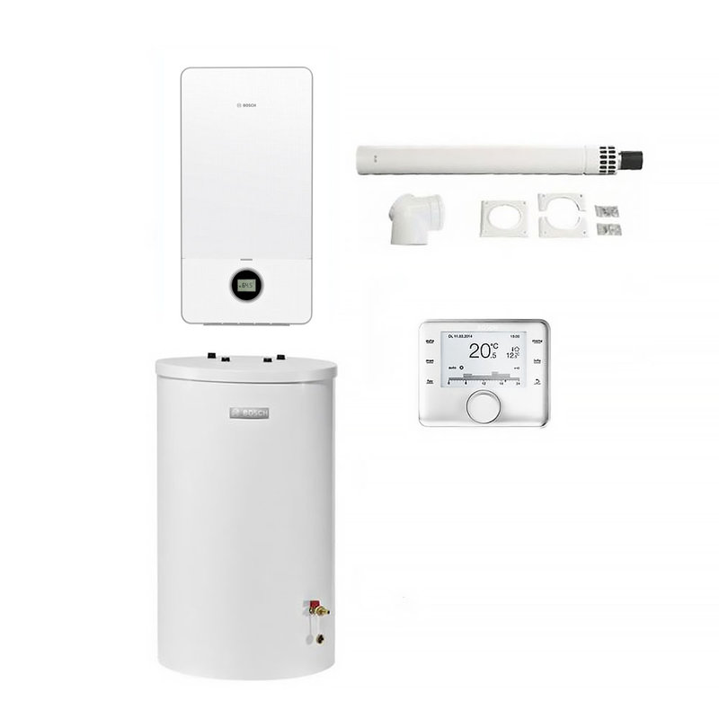 Pakiet Junkers Bosch Condens 2-15,2kW zasobnik 120L pogodówka zestaw szachtowy