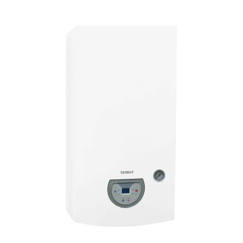 Kocioł Termet Silver podgrzewa wodę w sposób przepływowy. Elektroniczna konsola sterująca pozwala na kontrolę stanu jego pracy oraz nastawę temperatur obiegu grzewczego i ciepłej wody użytkowej. Moc 25kW zapewnia podstawowy komfort ciepłej wody dla jednego ujęcia w danej chwili.Głównie zalety urządzenia: