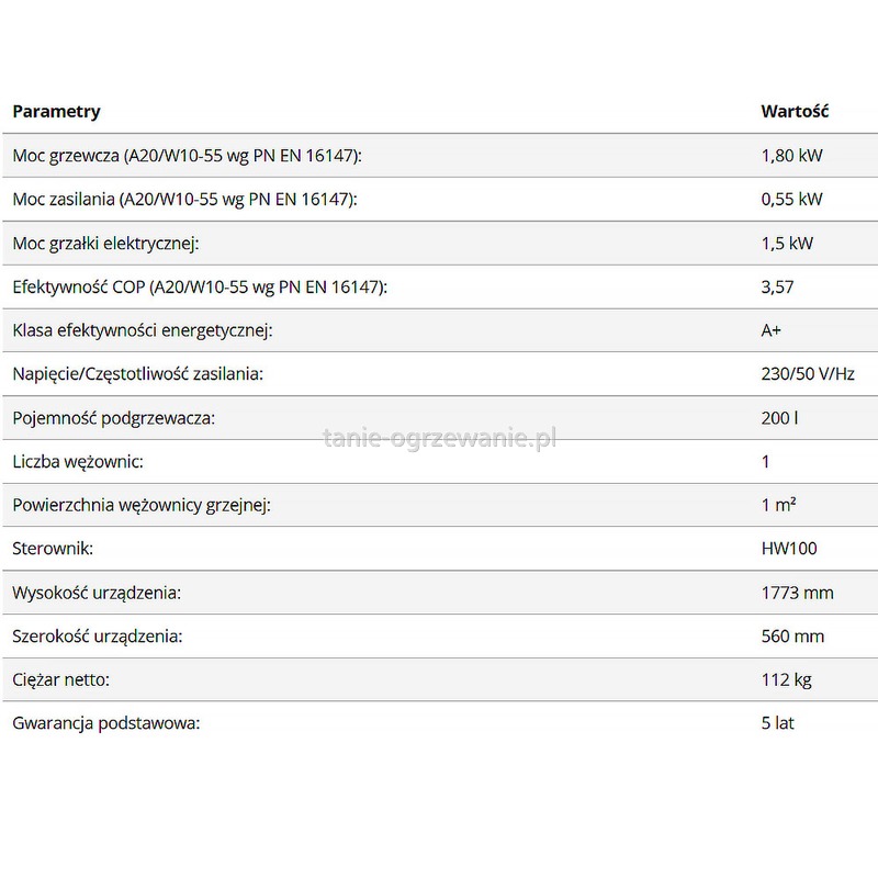 Pompa ciepła CWU EK 200L 1800W wężownica