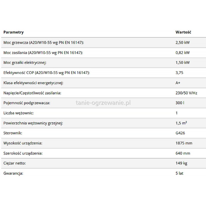Pompa ciepła CWU EK 300L 2500W wężownica