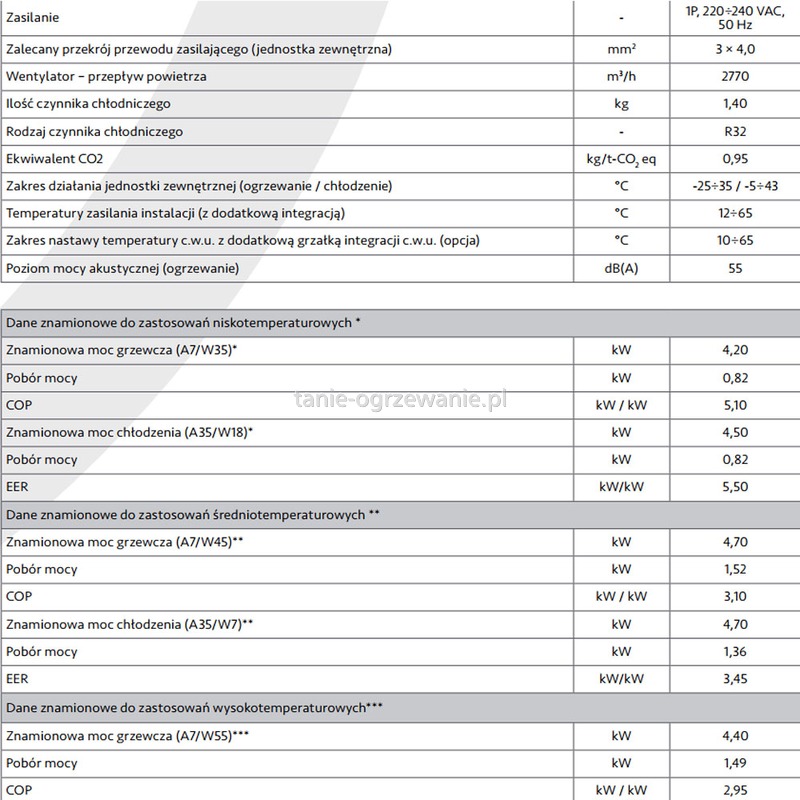 - Nowoczesna sprężarka inwerterowa o zmiennej prędkości pozwala na efektywne i tanie ogrzewanie, ale także na chłodzenie w okresie letnim (w połączeniu z ogrzewaniem podłogowym lub klimakonwektorami).