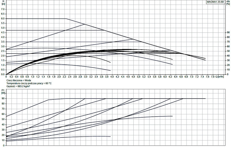 Pompa cyrkulacyjna Grundfos MAGNA1 to prosta opcja dla dobrze wykonanej pracy. Dzięki wysokiej sprawności energetycznej, produkt spełnia wymagania przepisów EuP 2015, zapewniając znaczne oszczędności energii elektrycznej, a dzięki intuicyjnemu, przyjaznemu dla użytkownika interfejsowi i bezobsługowej konstrukcji, MAGNA1 jest idealną pompą cyrkulacyjną dla podstawowych potrzeb w zastosowaniach, w których wymagane jest podstawowe sterowanie i monitorowanie systemu. Dzięki tej gamie pomp cyrkulacyjnych wszystko, od konfiguracji po podstawowe sterowanie i monitorowanie, jest łatwe. Dzięki konstrukcji z wirnikiem puszkowym pompa nie wymaga konserwacji. MAGNA1 oferuje możliwość monitorowania pompy poprzez wyjście przekaźnika awarii. Cyfrowe wejście start/stop zdalnie steruje pompą. Pompa komunikuje się bezprzewodowo z aplikacją Grundfos GO Remote. MAGNA1 może pracować jako pompa główna zarówno w zastosowaniach grzewczych, jak i chłodniczych. Pompa jest wyposażona w 4-biegunowy synchroniczny silnik z magnesami trwałymi (silnik PM). Ten typ silnika charakteryzuje się wyższą sprawnością niż konwencjonalny asynchroniczny silnik klatkowy. Prędkość pompy jest kontrolowana przez zintegrowaną przetwornicę częstotliwości.