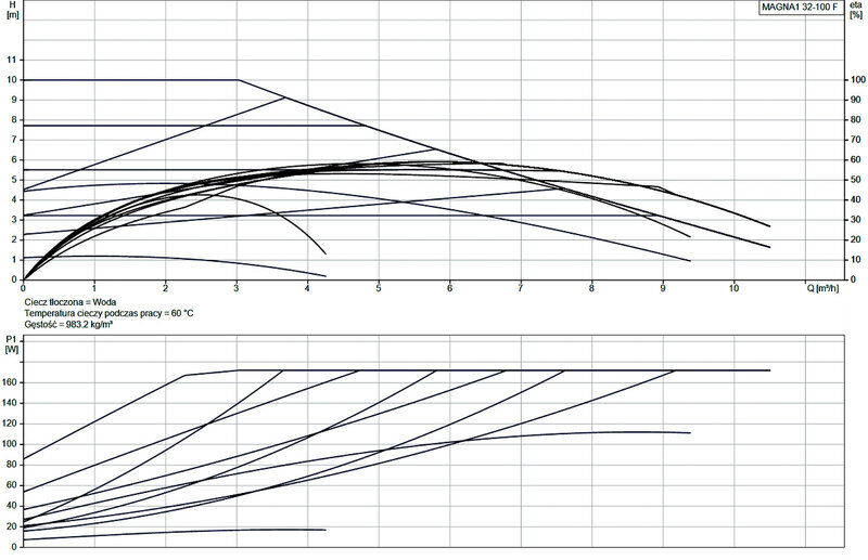 Pompa cyrkulacyjna Grundfos MAGNA1 to prosta opcja dla dobrze wykonanej pracy. Dzięki wysokiej sprawności energetycznej, produkt spełnia wymagania przepisów EuP 2015, zapewniając znaczne oszczędności energii elektrycznej, a dzięki intuicyjnemu, przyjaznemu dla użytkownika interfejsowi i bezobsługowej konstrukcji, MAGNA1 jest idealną pompą cyrkulacyjną dla podstawowych potrzeb w zastosowaniach, w których wymagane jest podstawowe sterowanie i monitorowanie systemu. Dzięki tej gamie pomp cyrkulacyjnych wszystko, od konfiguracji po podstawowe sterowanie i monitorowanie, jest łatwe. Dzięki konstrukcji z wirnikiem puszkowym pompa nie wymaga konserwacji. MAGNA1 oferuje możliwość monitorowania pompy poprzez wyjście przekaźnika awarii. Cyfrowe wejście start/stop zdalnie steruje pompą. Pompa komunikuje się bezprzewodowo z aplikacją Grundfos GO Remote. MAGNA1 może pracować jako pompa główna zarówno w aplikacjach grzewczych, jak i chłodniczych, w tym: Pętle mieszające Powierzchnie grzewcze Powierzchnie klimatyzacyjne Systemy gruntowych pomp ciepła Mniejsze zastosowania agregatów wody lodowej. MAGNA1 jest pompą jednofazową i charakteryzuje się tym, że sterownik i panel sterowania są zintegrowane w skrzynce sterowniczej. Obudowa pompy jest dostępna zarówno w wersji żeliwnej, jak i ze stali nierdzewnej. Kompozytowa puszka wirnika jest wzmocniona włóknem węglowym, płyta łożyskowa i okładzina wirnika są wykonane ze stali nierdzewnej, a obudowa stojana jest wykonana z aluminium. Elektronika mocy jest chłodzona powietrzem. W pompie zastosowano 4-biegunowy silnik synchroniczny z magnesami trwałymi (silnik PM). Ten typ silnika charakteryzuje się wyższą sprawnością niż konwencjonalny asynchroniczny silnik klatkowy. Prędkość pompy jest kontrolowana przez zintegrowaną przetwornicę częstotliwości.