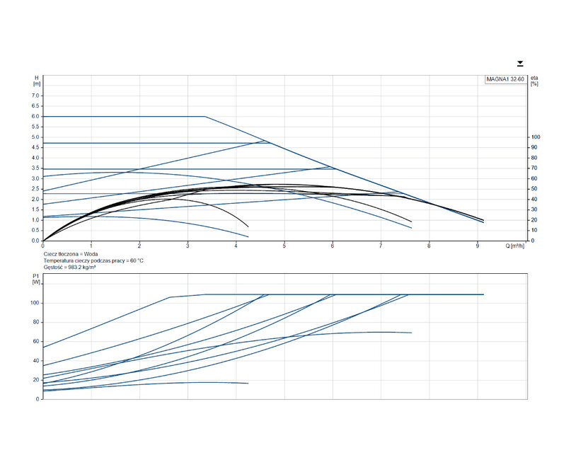 Pompa cyrkulacyjna Grundfos MAGNA1 to prosta opcja dla dobrze wykonanej pracy. Dzięki wysokiej sprawności energetycznej, produkt spełnia wymagania przepisów EuP 2015, zapewniając znaczne oszczędności energii elektrycznej, a dzięki intuicyjnemu, przyjaznemu dla użytkownika interfejsowi i bezobsługowej konstrukcji, MAGNA1 jest idealną pompą cyrkulacyjną dla podstawowych potrzeb w zastosowaniach, w których wymagane jest podstawowe sterowanie i monitorowanie systemu. Dzięki tej gamie pomp cyrkulacyjnych wszystko, od konfiguracji po podstawowe sterowanie i monitorowanie, jest łatwe. Dzięki konstrukcji z wirnikiem puszkowym pompa nie wymaga konserwacji. MAGNA1 oferuje możliwość monitorowania pompy poprzez wyjście przekaźnika awarii. Cyfrowe wejście start/stop zdalnie steruje pompą. Pompa komunikuje się bezprzewodowo z aplikacją Grundfos GO Remote. MAGNA1 może pracować jako pompa główna zarówno w zastosowaniach grzewczych, jak i chłodniczych. MAGNA1 jest pompą jednofazową i charakteryzuje się tym, że sterownik i panel sterowania są zintegrowane w skrzynce sterowniczej. Obudowa pompy jest dostępna zarówno w wersji żeliwnej, jak i ze stali nierdzewnej. Kompozytowa puszka wirnika jest wzmocniona włóknem węglowym, płyta łożyskowa i okładzina wirnika są wykonane ze stali nierdzewnej, a obudowa stojana jest wykonana z aluminium. Elektronika mocy jest chłodzona powietrzem. W pompie zastosowano 4-biegunowy silnik synchroniczny z magnesami trwałymi (silnik PM). Ten typ silnika charakteryzuje się wyższą sprawnością niż konwencjonalny asynchroniczny silnik klatkowy. Prędkość pompy jest kontrolowana przez zintegrowaną przetwornicę częstotliwości.